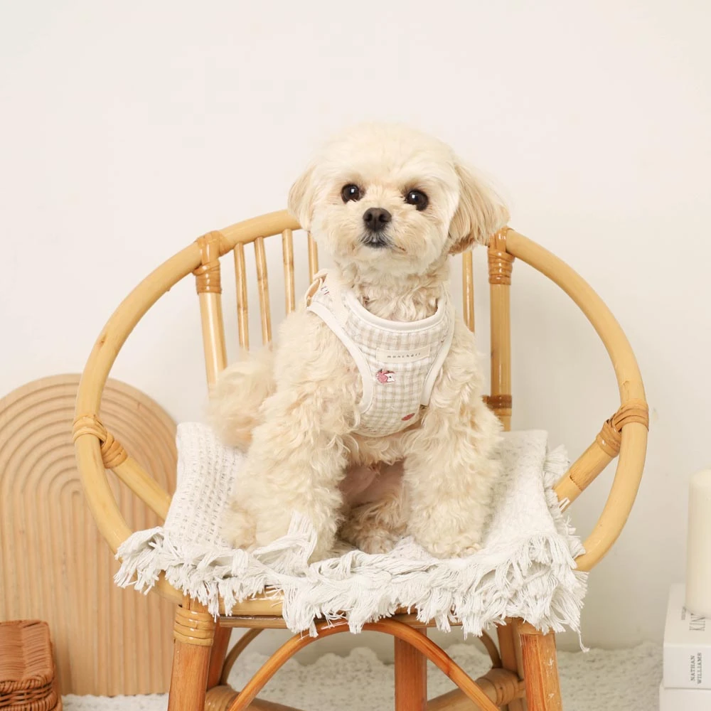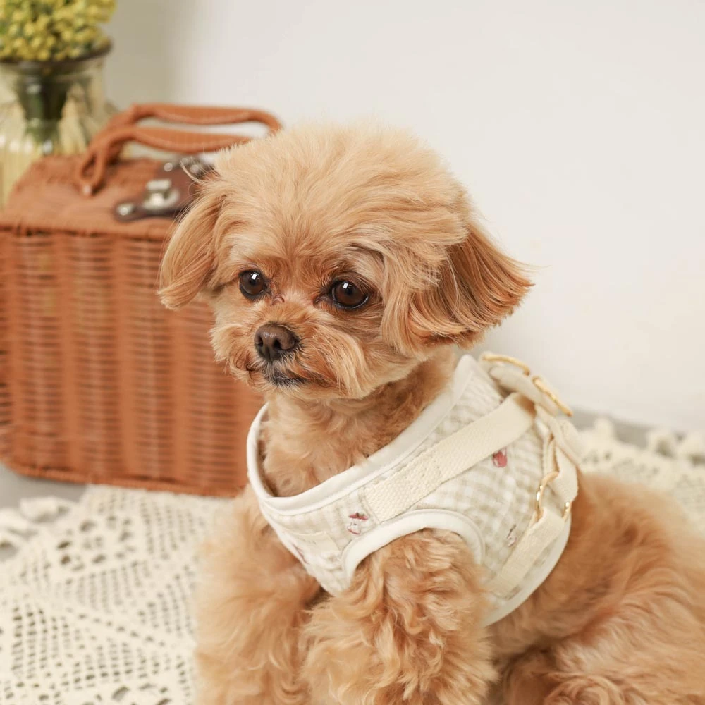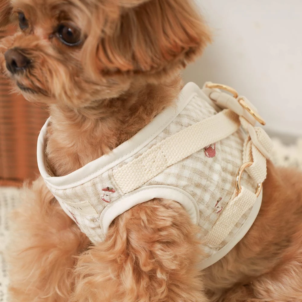 愛犬の個性を輝かせるリンゴ柄刺繍ハーネス+リードSET