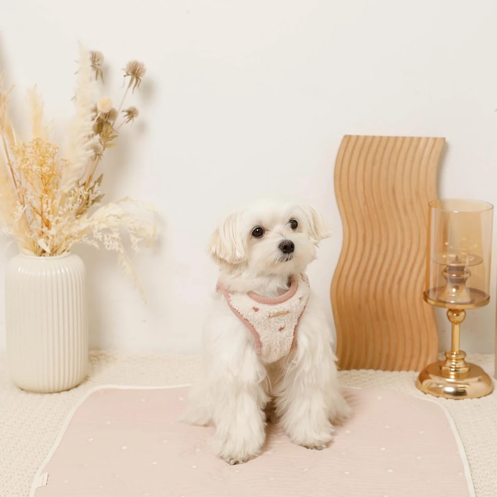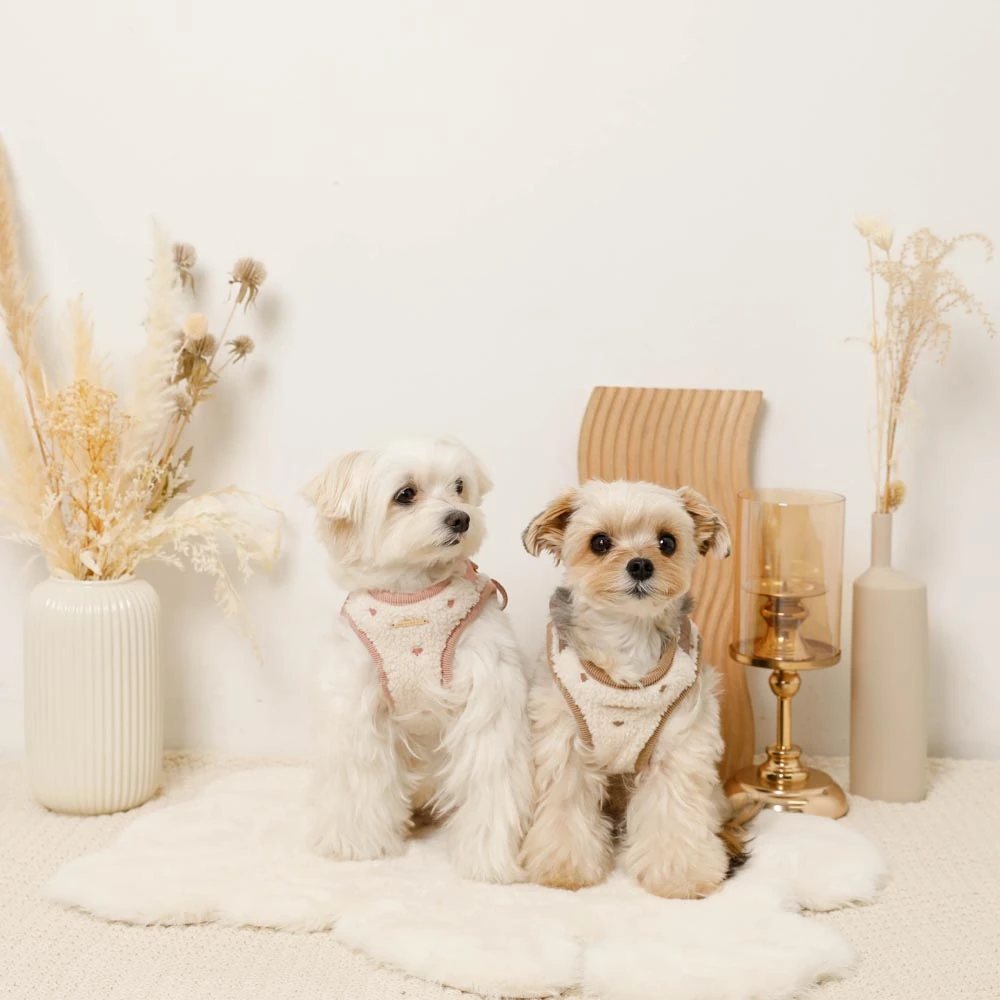 このハーネスセットは、見た目の美しさだけでなく、愛犬の快適性と安全性にもこだわっています。柔らかいボア素材は皮膚への刺激が少なく、長時間の装着でも負担になりません。しっかりとした構造でありながら、愛犬の動きを妨げない設計で、自由で楽しいお散歩をサポートします。