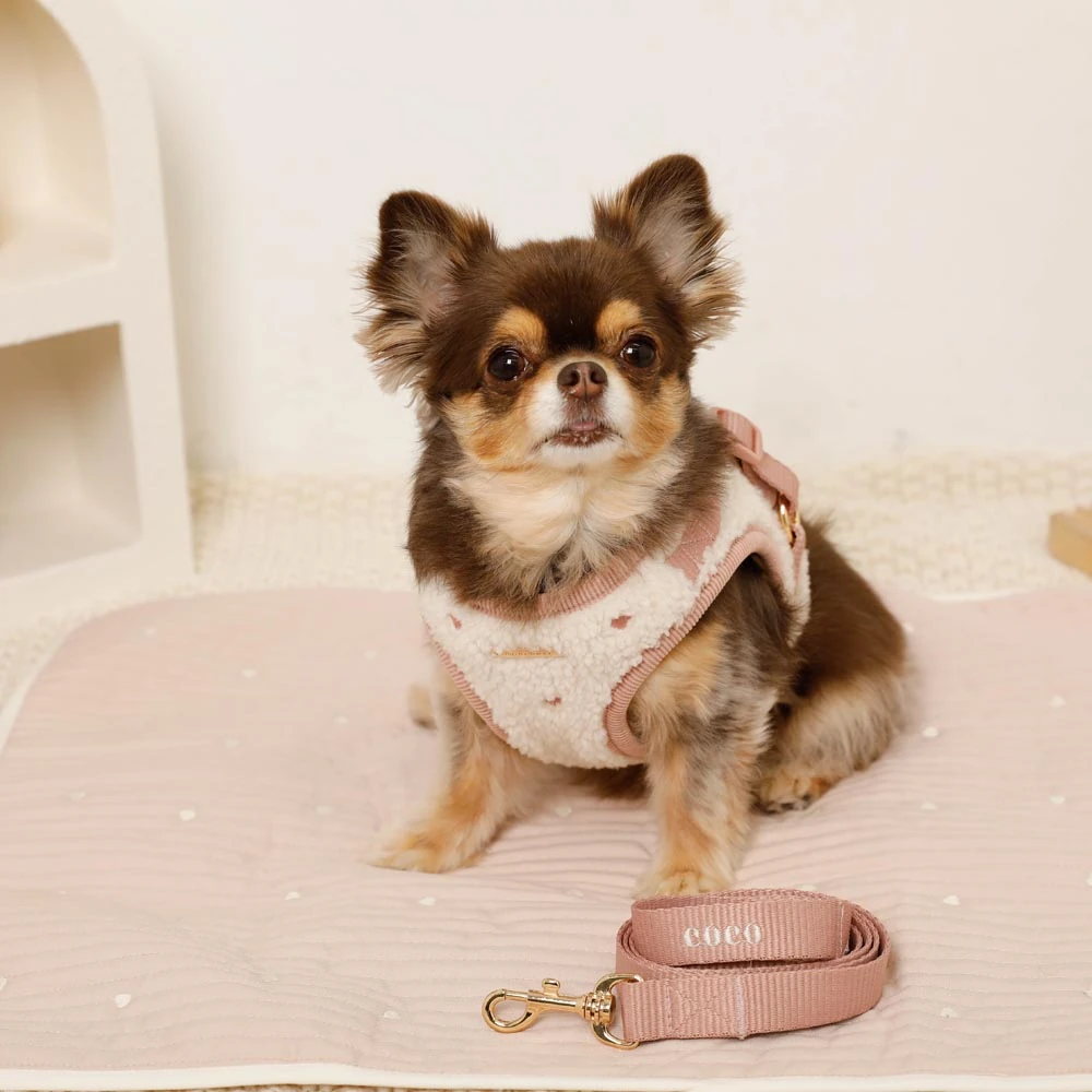 ボアハート刺繍ハーネス+リードSETは、愛犬の個性を輝かせるプレミアムペットアクセサリーです。毎日のお散歩が、より特別で楽しい時間に変わります。名入れ刺繍に対応しているため、世界に一つだけのオリジナルアイテムとして、愛犬への愛情を形にすることができます。