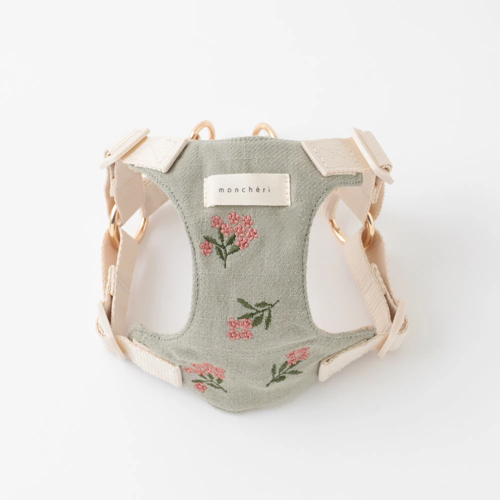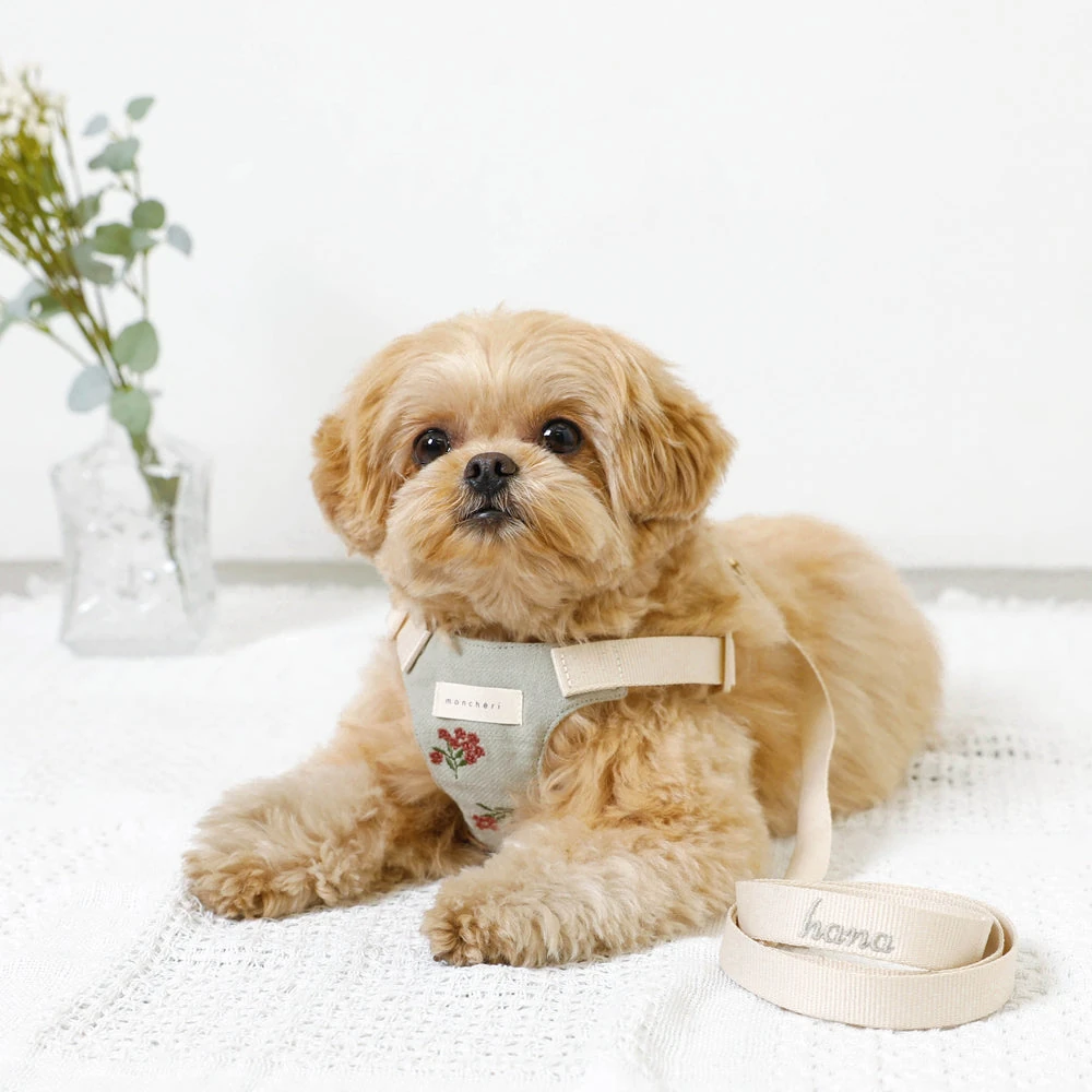 冷感フラワー刺繍ハーネス+リードSET【名入れ刺繍対応】