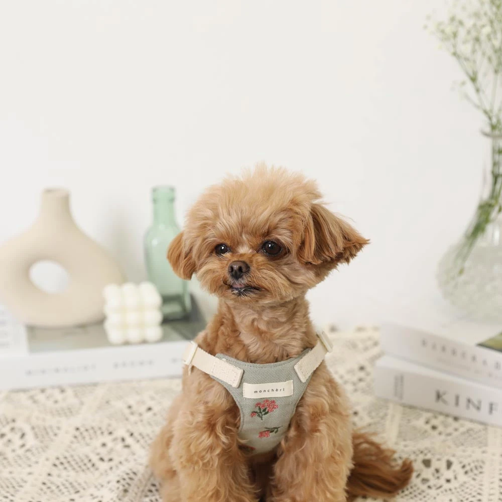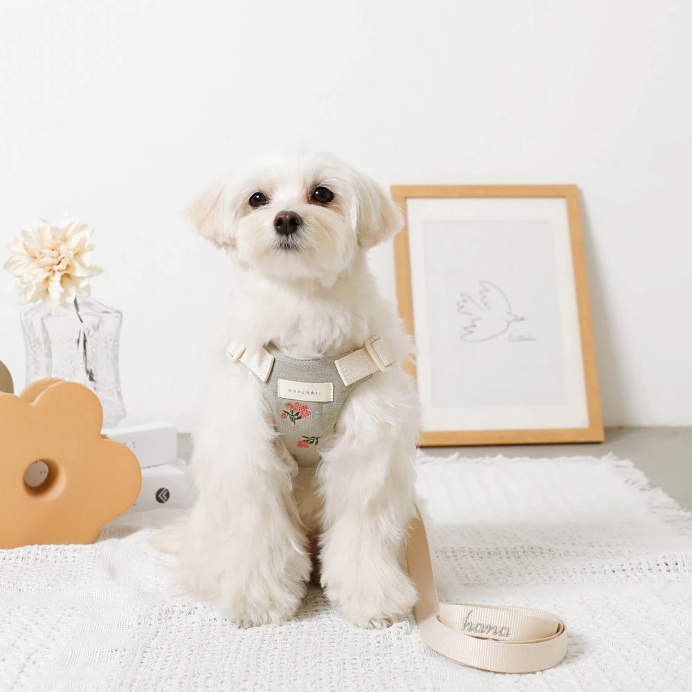 愛犬の快適な夏を約束する 冷感フラワー刺繍ハーネス+リードSET