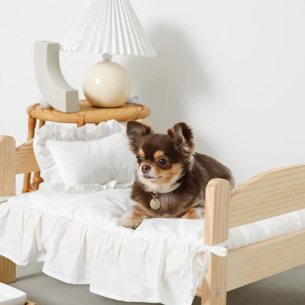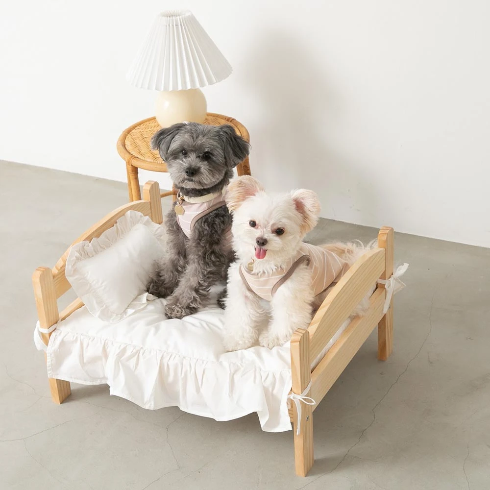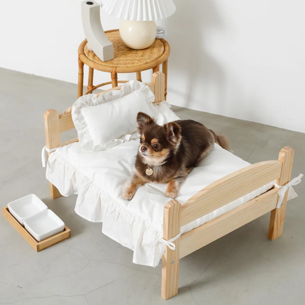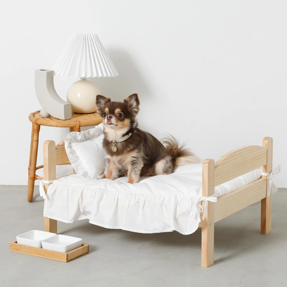 フリル組み立てウッドベッド:愛犬のための最高級休息空間