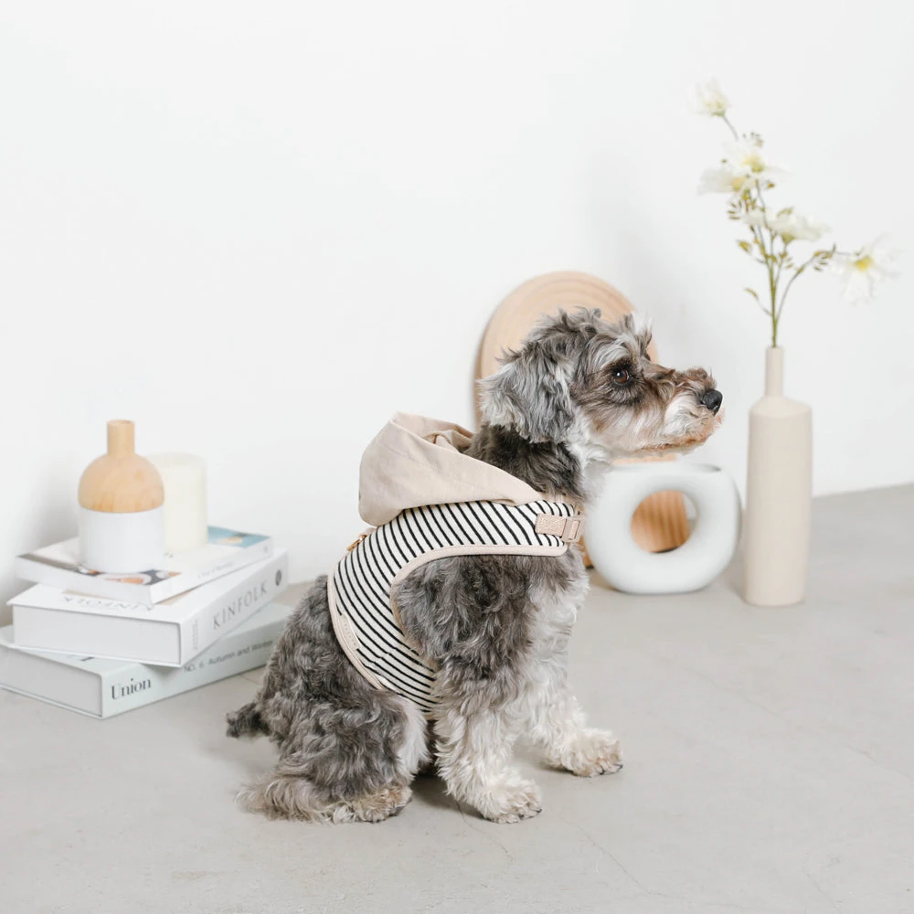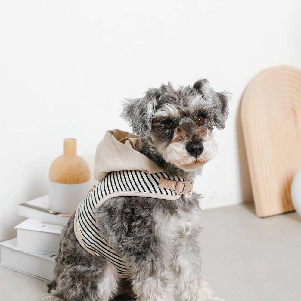愛犬との散歩は、毎日の大切なコミュニケーションタイム。そんな特別な瞬間を、より快適で安全に、そしておしゃれに彩るのが「フード付きボーダーハーネス+リードSET」です。プレミアムペットプロダクツとして、機能性とデザイン性を両立したこだわりの一品をご紹介します。