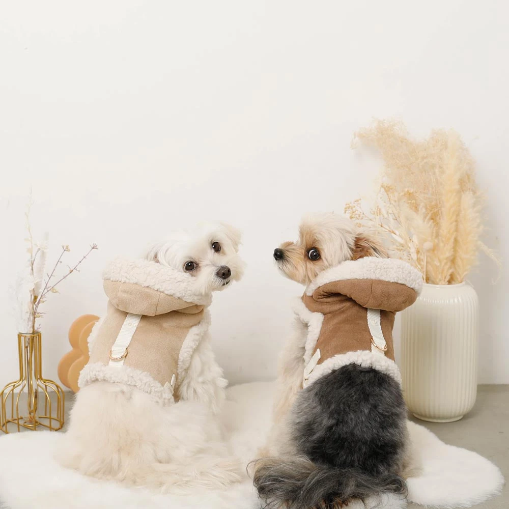 ムートンボアフードハーネス:愛犬の冬の必須アイテム