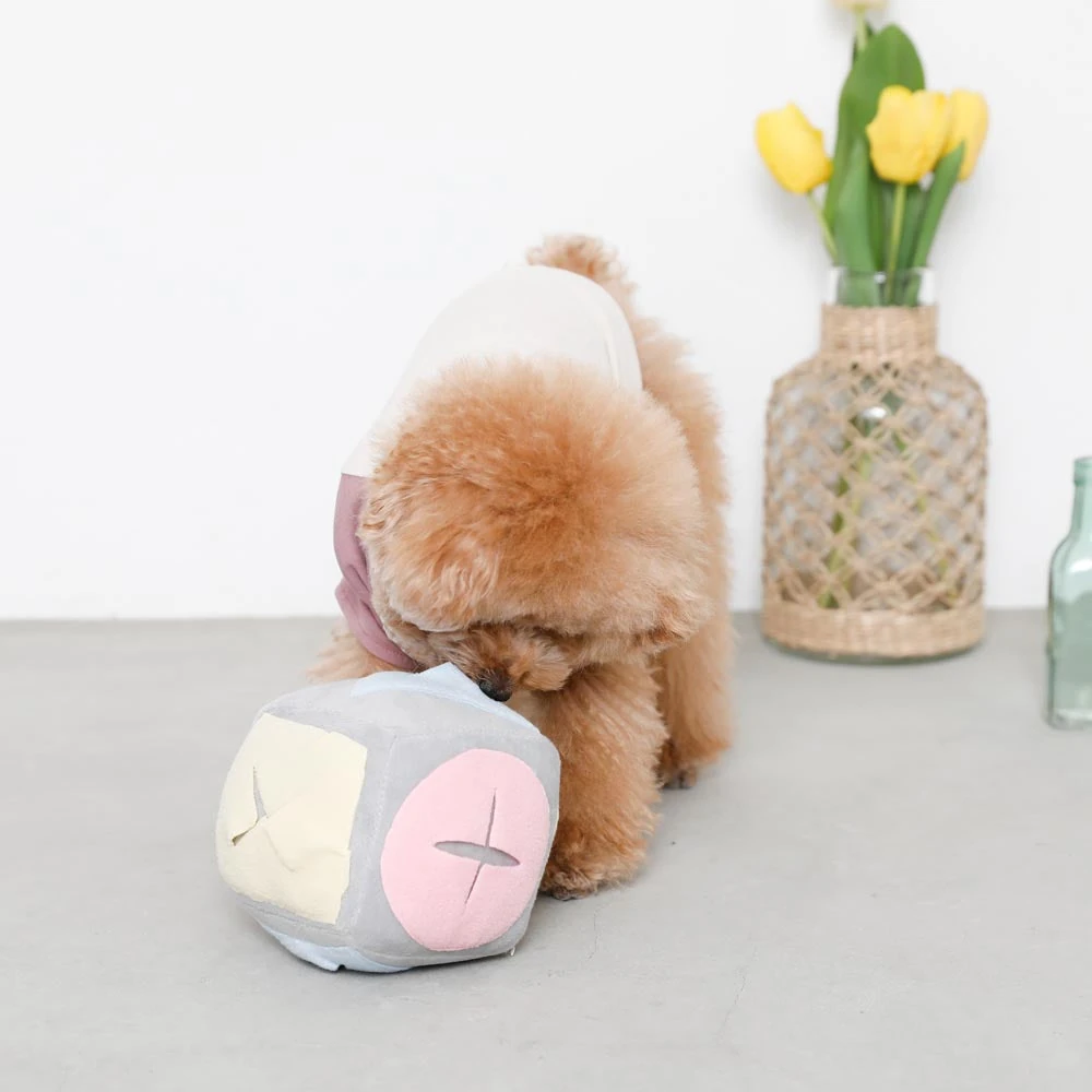 - 転がしやすい形状:犬が鼻や足で転がしやすい立方体デザイン