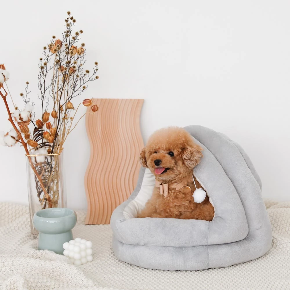 ワンちゃんの睡眠環境を見直してみませんか?ポンポン付セミクローズドベッド Sは、愛犬の快適な休息を追求して開発された高級ペットベッドです。半密閉型のデザインが犬本来の習性に合致し、安心してくつろげる空間を提供します。新製品として¥6,500という特別価格でご提供するこちらの商品は、機能性とデザイン性を兼ね備えた理想的な寝床です。