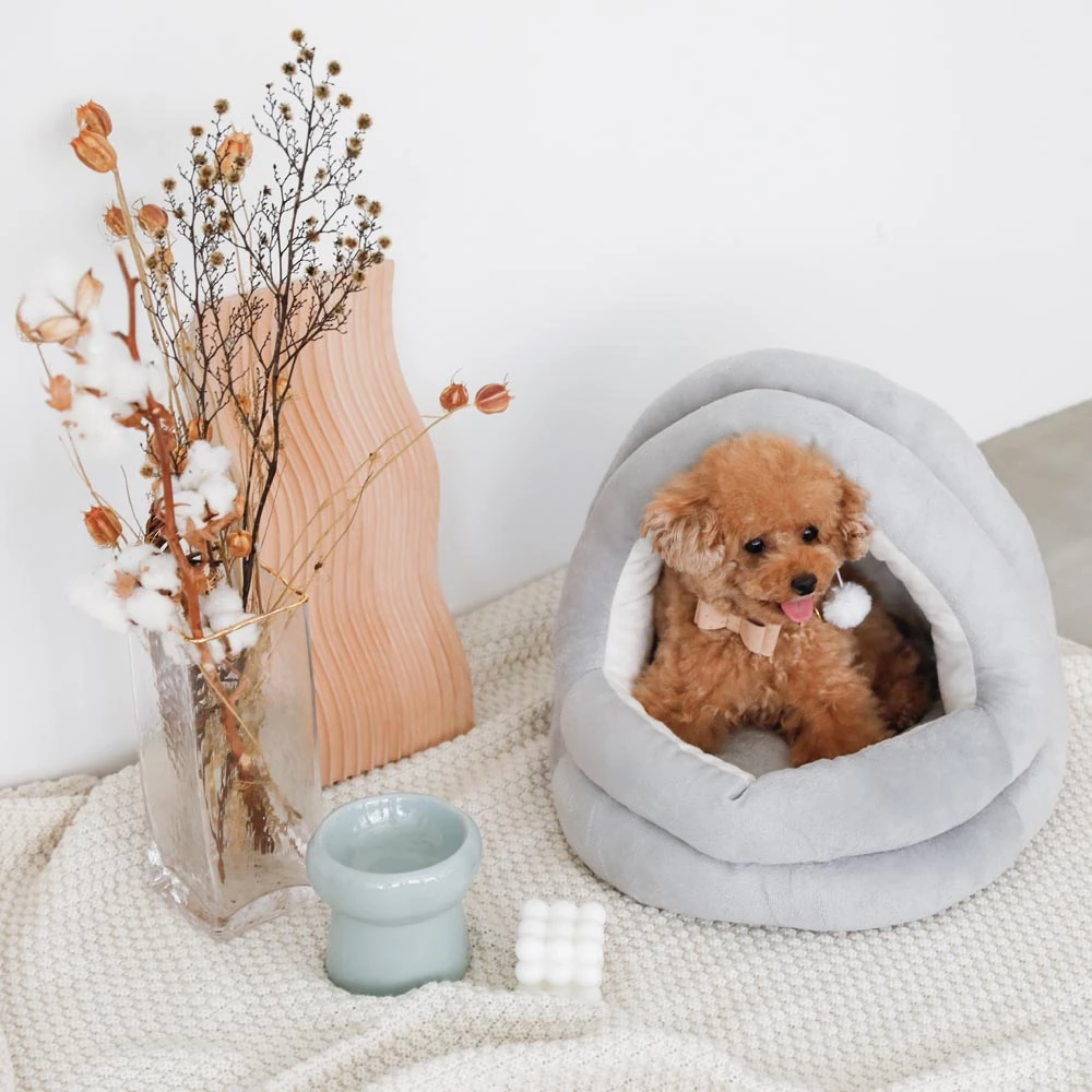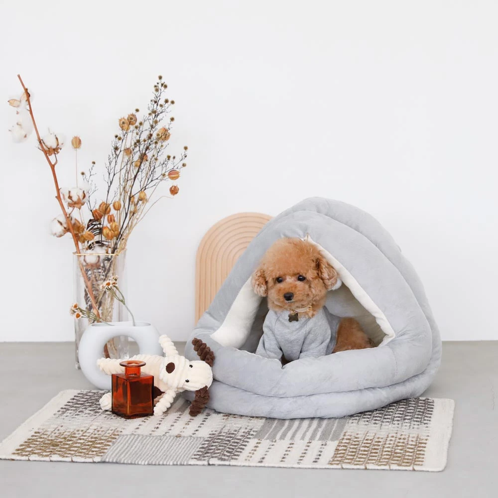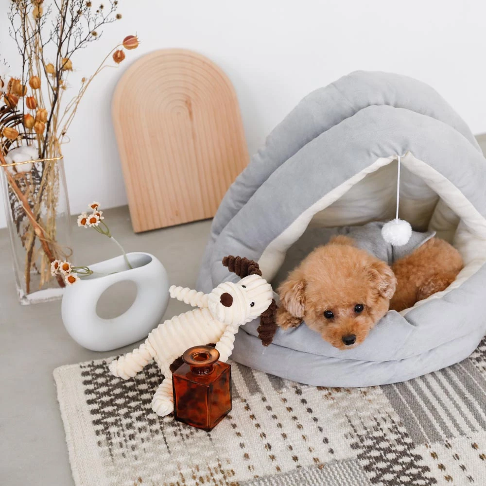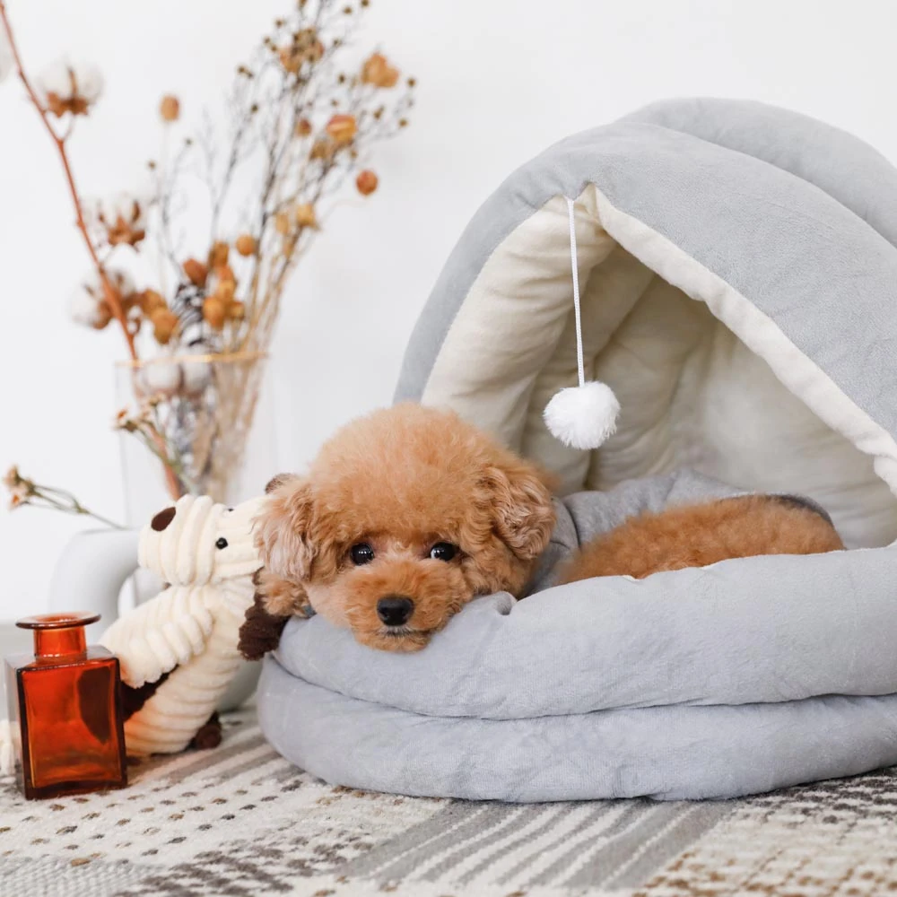 愛犬のための至福の休息空間:ポンポン付セミクローズドベッド S