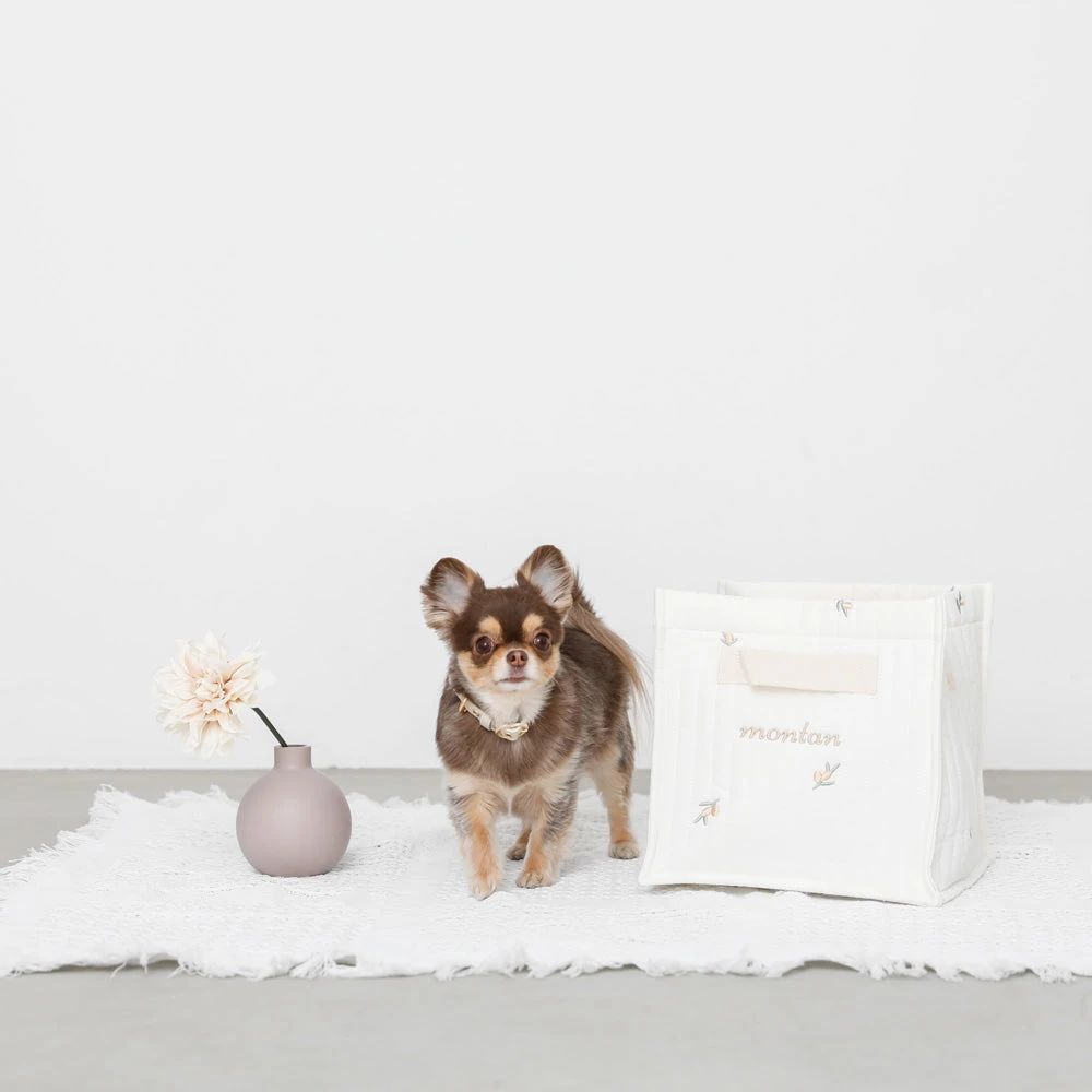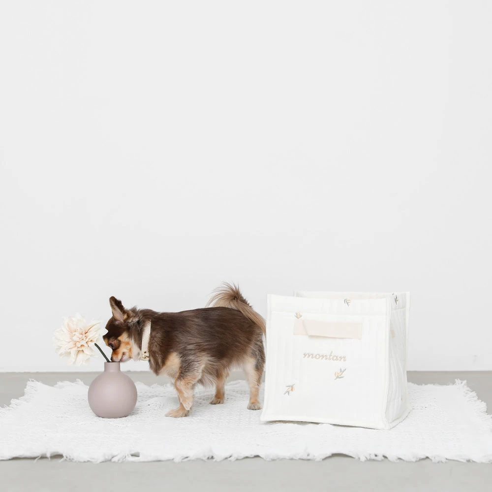 ペットライフをより豊かに、より便利にするために開発されたキルティング刺繍マルチボックス。愛犬のおもちゃやおやつ、お手入れ用品が散らばっていませんか?このプレミアムマルチボックスは、そんなお悩みを解決するだけでなく、愛犬への愛情を形にできる特別な製品です。