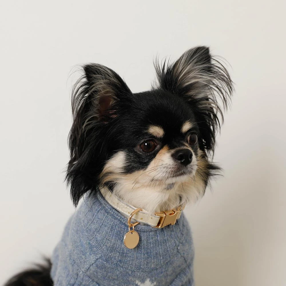 職人が一点一点丁寧に施した星柄のデザインは、クラシックでありながらモダンな印象を与えます。大小さまざまな星を散りばめたバランスの取れたデザインは、愛犬の首元を優雅に飾ります。デザイン性が高いだけでなく、反射素材との調和も考慮された機能的な美しさが特徴です。