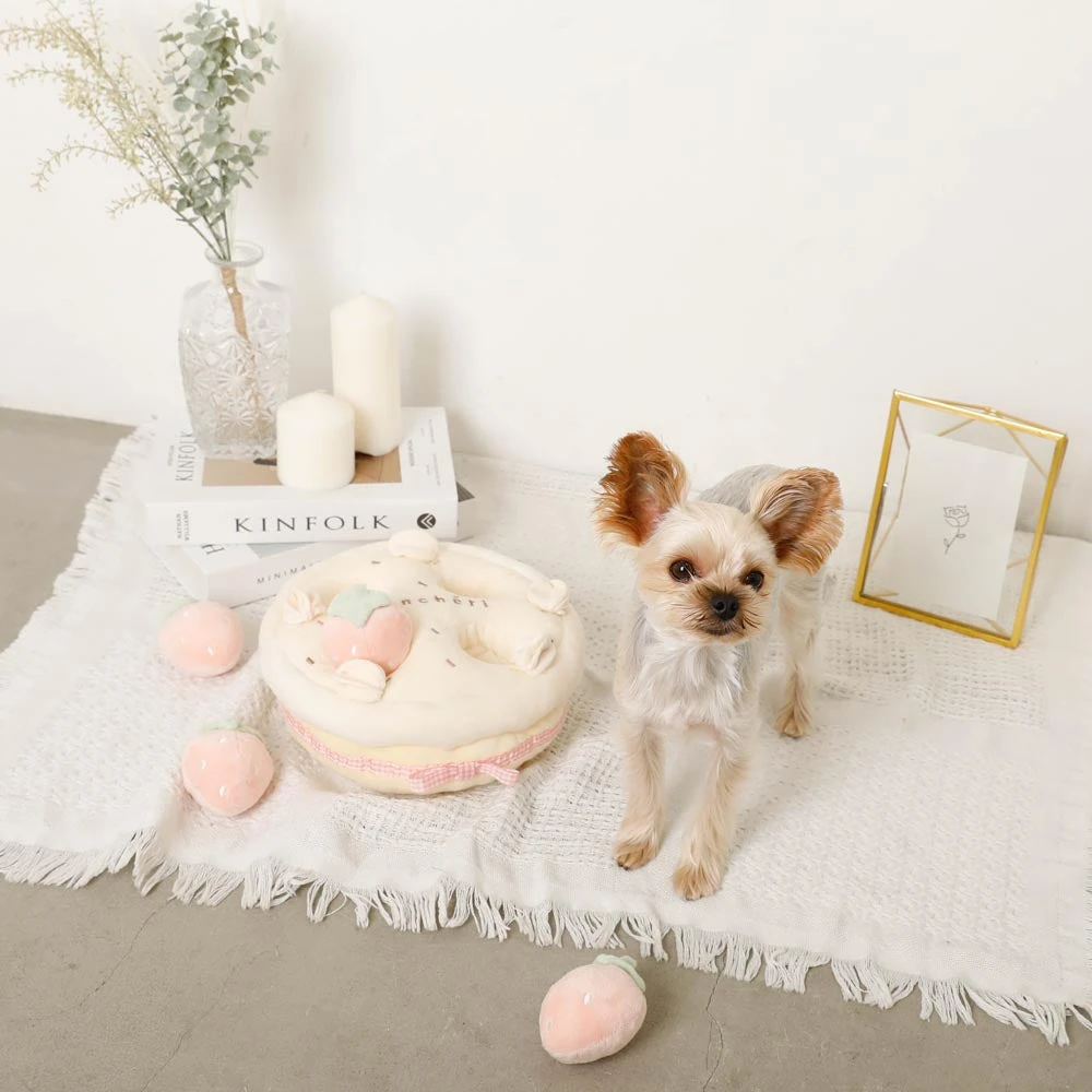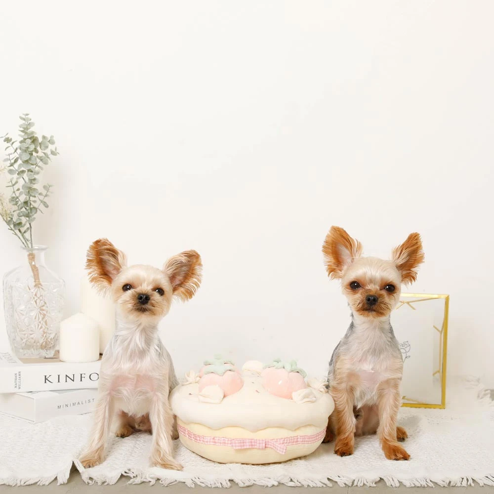 - リアルないちごケーキデザイン:視覚的にも楽しいデザインが愛犬の興味を引き付けます