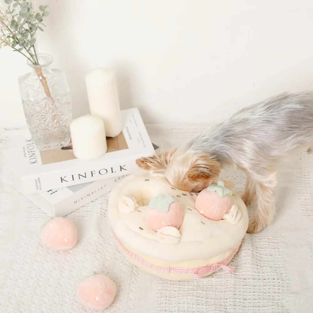 いちごのホールケーキノーズワークおもちゃ:愛犬の知性を育むプレミアム知育玩具