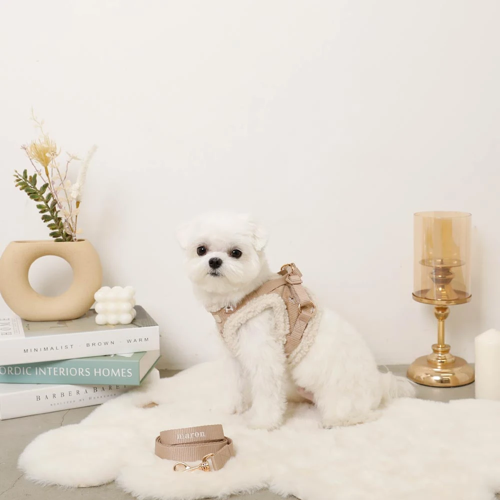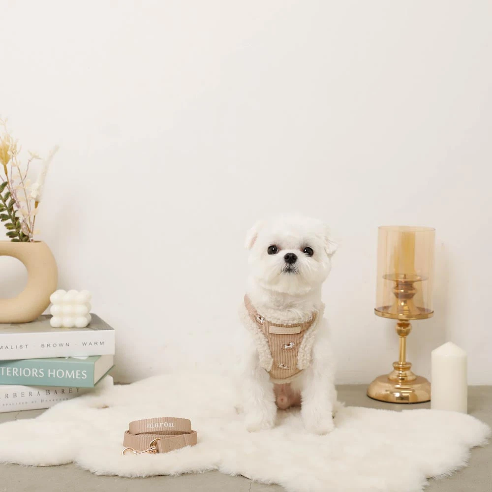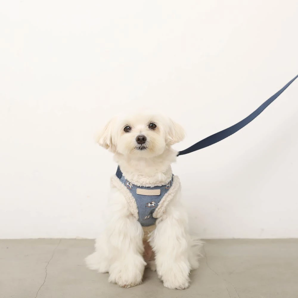 愛犬の特別感を最高に引き出す木馬刺繍入りコーデュロイボアハーネス+リードSET