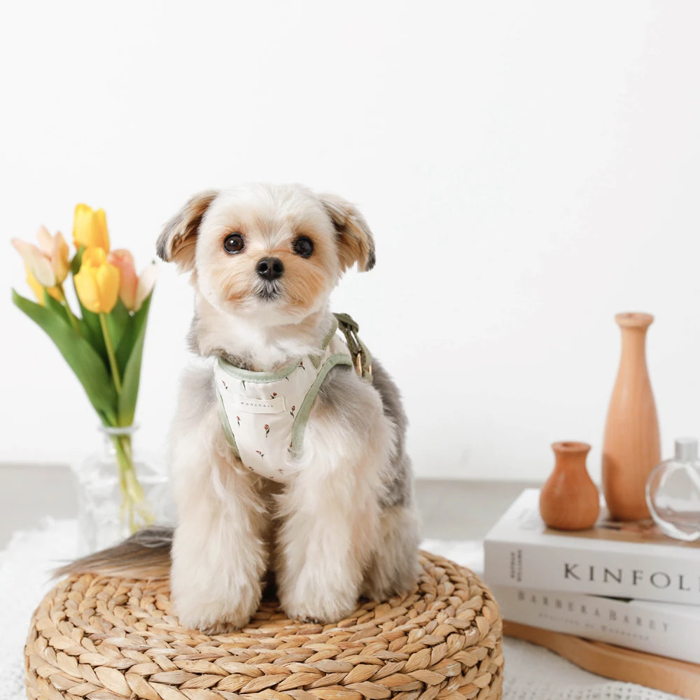 愛犬の散歩がもっと楽しくなる!チューリップ柄ハーネス+リードSET
